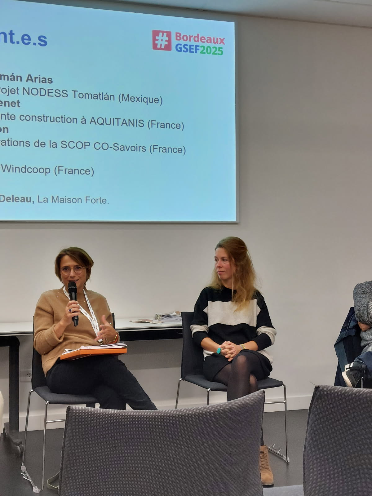 > une coopération avec le GPV Rive Droite, représenté par Orianne Hommet qui intervenait lors d’une table ronde intitulée « Créer, coopérer, transformer : vers une écologie populaire et solidaire des déchets » illustrant la démarche partenariale et de synergie sur Bordeaux Métropole entre les opérateurs : aquitanis, GPV Rive Droite, Domofrance, Mésolia, La Fab et les acteurs de l’ESS autour de l’économie circulaire.