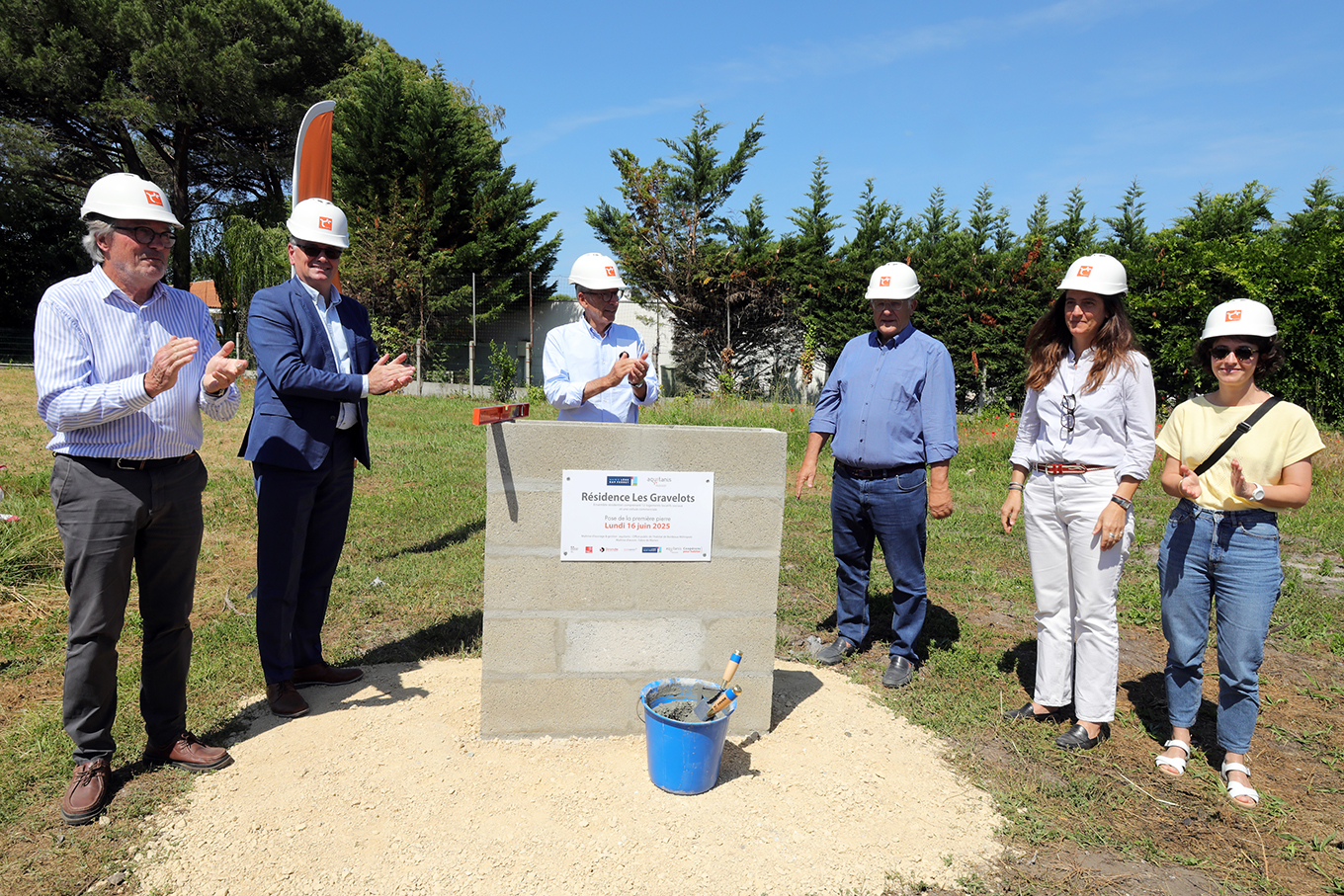 Le chantier de la résidence Les Gravelots a été officiellement lancé le 16 juin dernier avec la pose de la première pierre de cet ensemble de 12 logements locatifs sociaux, par Philippe de Gonneville, Maire de Lège-Cap Ferret et Jean-Luc Gorce, directeur général d’aquitanis.